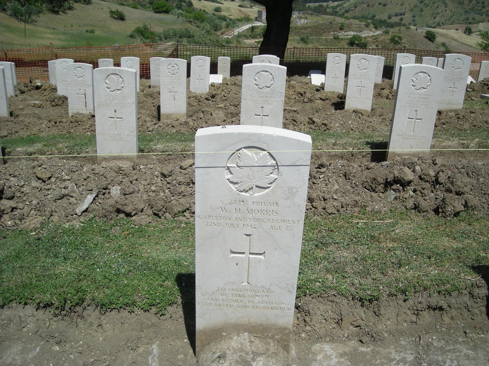 Le 10 juillet 1943, après avoir conclu avec succès à la mi-mai la campagne d'Afrique du Nord, un contigent allié de 160 000 hommes, formé de soldats Américains et du Commonwealth, débarqua en Sicile avant de prendre d'assaut l'Italie continentale. Les Italiens, qui allaient bientôt signer la paix avec les Alliés et poursuivre la guerre à leurs côtés, offrirent peu de résistance. L'opposition des Allemands fut toutefois très vigoureuse. La campagne de Sicile prit fin le 17 août, lors de la jonction des deux contingents alliés à Messine. On ne parvint pas cependant à couper la retraite ennemie. Agira fut prise le 28 juillet par la 1re Division canadienne. En septembre, on choisit le site où seraient inhumés tous les Canadiens morts au combat durant la campagne de Sicile. Le cimetière militaire canadien d'Agira renferme 491 tombes de soldats du Commonwealth décédés durant la Seconde Guerre mondiale.
