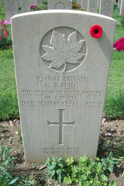 Pendant l'hiver de 1943, les armées allemandes en Italie défendaient une ligne qui s'étendait depuis la mer Thyrénéenne au nord de Naples, jusqu'à l'Adriatique au sud d'Ortona. L'objectif des Alliés consistait à enfoncer cette ligne et à s'emparer de Rome. De son côté, la 1re Division de l'infanterie canadienne devait franchir la rivière Moro et s'emparer d'Ortona. En janvier 1944, les Corps d'armée canadien choisit ce site, afin d'y inhumer ceux qui périrent au cours de la bataille d'Ortona et des combats livrés pendant les semaines qui l'avaient précédée et suivie. Aujourd'hui, on y trouve 1 651 sépultures dont plus de 50 non identifiées et celles de 1 375 Canadiens.