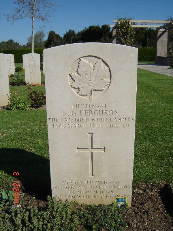 Pendant l'hiver de 1943, les armées allemandes en Italie défendaient une ligne qui s'étendait depuis la mer Thyrénéenne au nord de Naples, jusqu'à l'Adriatique au sud d'Ortona. L'objectif des Alliés consistait à enfoncer cette ligne et à s'emparer de Rome. De son côté, la 1re Division de l'infanterie canadienne devait franchir la rivière Moro et s'emparer d'Ortona. En janvier 1944, les Corps d'armée canadien choisit ce site, afin d'y inhumer ceux qui périrent au cours de la bataille d'Ortona et des combats livrés pendant les semaines qui l'avaient précédée et suivie. Aujourd'hui, on y trouve 1 651 sépultures dont plus de 50 non identifiées et celles de 1 375 Canadiens.