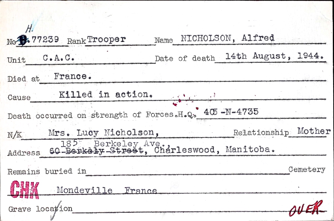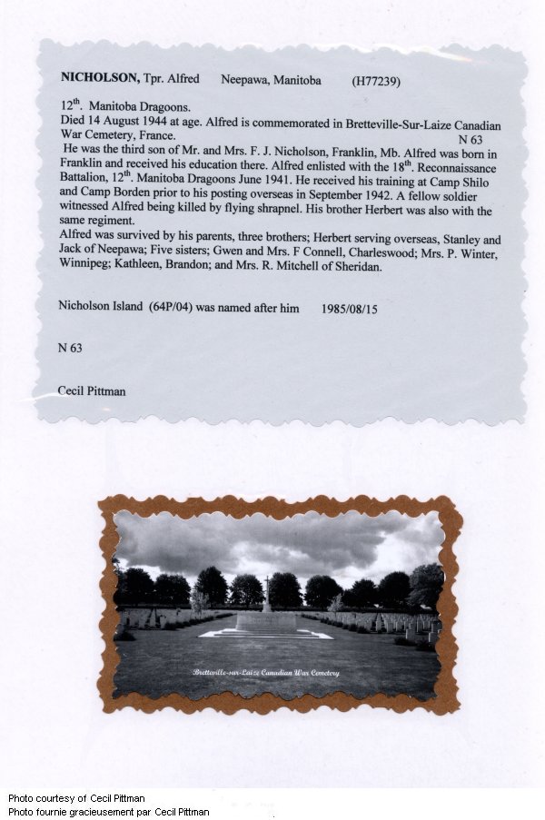 Fils de Frederick James Nicholson et Lucy Nicholson, de Charleswood, Manitoba.