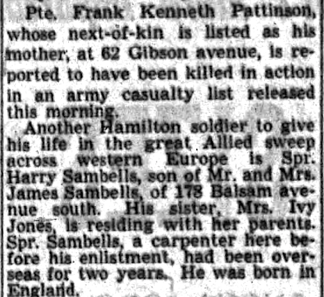 Fils de Frank et Edith Pattinson, de Hamilton, Ontario.