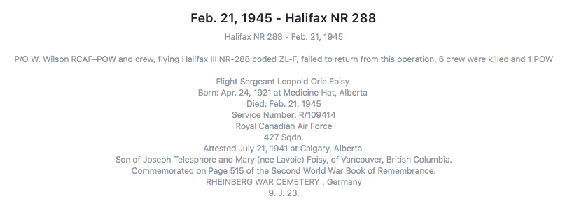 Page 515 du Livre du Souvenir de la Seconde Guerre mondiale.
