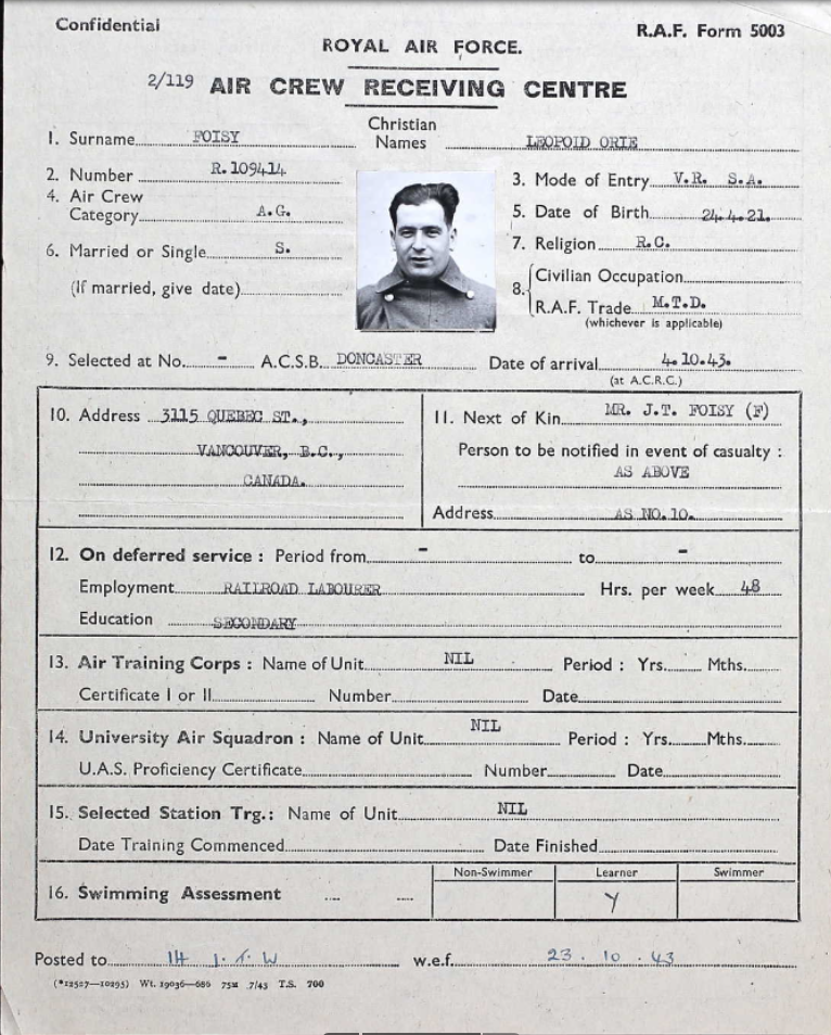 Fils de Joseph T. Foisy et Mary Foisy, de Vancouver, Colombie-Britannique, Canada.