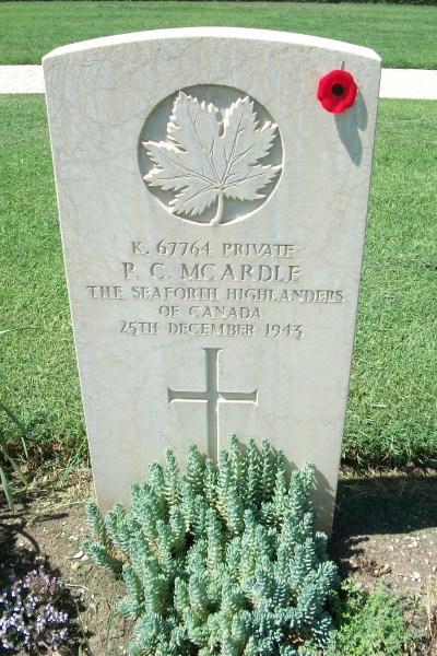 Pendant l'hiver de 1943, les armées allemandes en Italie défendaient une ligne qui s'étendait depuis la mer Thyrénéenne au nord de Naples, jusqu'à l'Adriatique au sud d'Ortona. L'objectif des Alliés consistait à enfoncer cette ligne et à s'emparer de Rome. De son côté, la 1re Division de l'infanterie canadienne devait franchir la rivière Moro et s'emparer d'Ortona. En janvier 1944, les Corps d'armée canadien choisit ce site, afin d'y inhumer ceux qui périrent au cours de la bataille d'Ortona et des combats livrés pendant les semaines qui l'avaient précédée et suivie. Aujourd'hui, on y trouve 1 651 sépultures dont plus de 50 non identifiées et celles de 1 375 Canadiens.