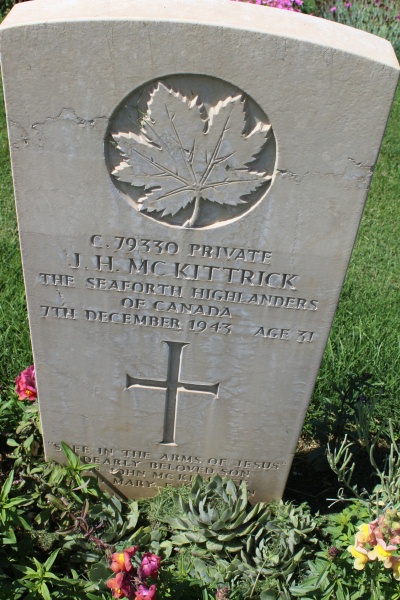 Pendant l'hiver de 1943, les armées allemandes en Italie défendaient une ligne qui s'étendait depuis la mer Thyrénéenne au nord de Naples, jusqu'à l'Adriatique au sud d'Ortona. L'objectif des Alliés consistait à enfoncer cette ligne et à s'emparer de Rome. De son côté, la 1re Division de l'infanterie canadienne devait franchir la rivière Moro et s'emparer d'Ortona. En janvier 1944, les Corps d'armée canadien choisit ce site, afin d'y inhumer ceux qui périrent au cours de la bataille d'Ortona et des combats livrés pendant les semaines qui l'avaient précédée et suivie. Aujourd'hui, on y trouve 1 651 sépultures dont plus de 50 non identifiées et celles de 1 375 Canadiens.