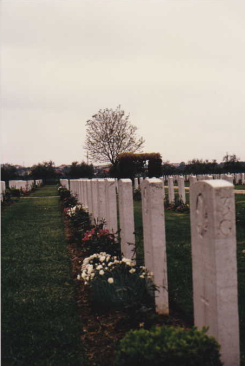Pendant l'hiver de 1943, les armées allemandes en Italie défendaient une ligne qui s'étendait depuis la mer Thyrénéenne au nord de Naples, jusqu'à l'Adriatique au sud d'Ortona. L'objectif des Alliés consistait à enfoncer cette ligne et à s'emparer de Rome. De son côté, la 1re Division de l'infanterie canadienne devait franchir la rivière Moro et s'emparer d'Ortona. En janvier 1944, les Corps d'armée canadien choisit ce site, afin d'y inhumer ceux qui périrent au cours de la bataille d'Ortona et des combats livrés pendant les semaines qui l'avaient précédée et suivie. Aujourd'hui, on y trouve 1 651 sépultures dont plus de 50 non identifiées et celles de 1 375 Canadiens.