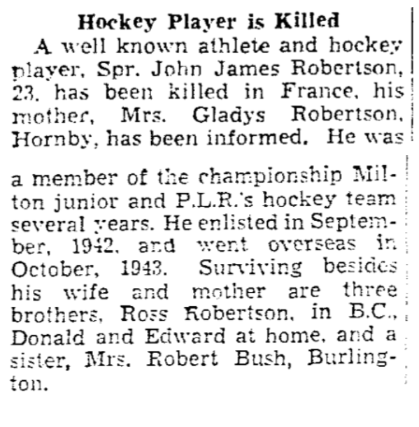 Fils de Stuart et Gladys Robertson. Époux de Elma Robertson, de Milton, Ontario.