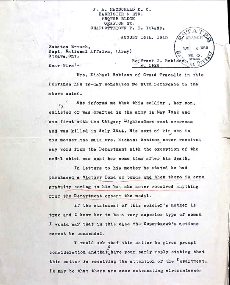 Fils de Michael et Agatha Robison, de Grand Tracadie, Île-du-Prince-Édouard.