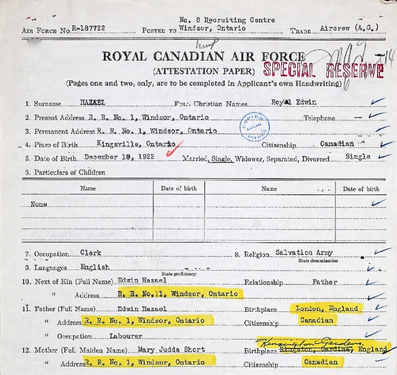 Galerie numérique de Sous-lieutenant d'aviation Royal Edwin Hazael
