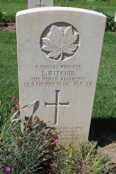 Pendant l'hiver de 1943, les armées allemandes en Italie défendaient une ligne qui s'étendait depuis la mer Thyrénéenne au nord de Naples, jusqu'à l'Adriatique au sud d'Ortona. L'objectif des Alliés consistait à enfoncer cette ligne et à s'emparer de Rome. De son côté, la 1re Division de l'infanterie canadienne devait franchir la rivière Moro et s'emparer d'Ortona. En janvier 1944, les Corps d'armée canadien choisit ce site, afin d'y inhumer ceux qui périrent au cours de la bataille d'Ortona et des combats livrés pendant les semaines qui l'avaient précédée et suivie. Aujourd'hui, on y trouve 1 651 sépultures dont plus de 50 non identifiées et celles de 1 375 Canadiens.