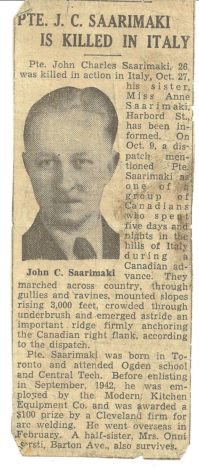 Galerie numérique de Soldat John Charles Saarimaki