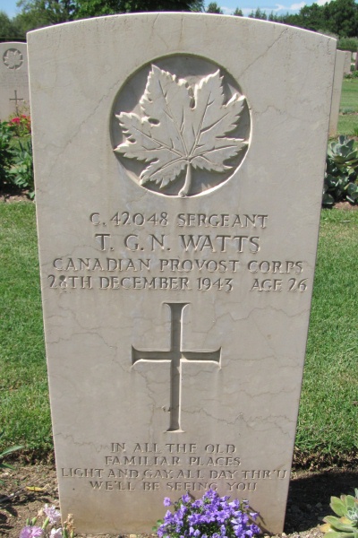 Pendant l'hiver de 1943, les armées allemandes en Italie défendaient une ligne qui s'étendait depuis la mer Thyrénéenne au nord de Naples, jusqu'à l'Adriatique au sud d'Ortona. L'objectif des Alliés consistait à enfoncer cette ligne et à s'emparer de Rome. De son côté, la 1re Division de l'infanterie canadienne devait franchir la rivière Moro et s'emparer d'Ortona. En janvier 1944, les Corps d'armée canadien choisit ce site, afin d'y inhumer ceux qui périrent au cours de la bataille d'Ortona et des combats livrés pendant les semaines qui l'avaient précédée et suivie. Aujourd'hui, on y trouve 1 651 sépultures dont plus de 50 non identifiées et celles de 1 375 Canadiens.
