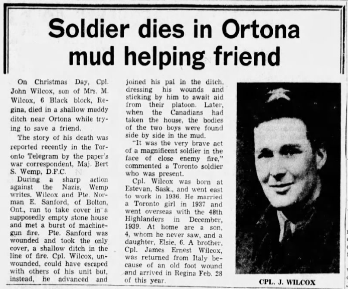 Pendant l'hiver de 1943, les armées allemandes en Italie défendaient une ligne qui s'étendait depuis la mer Thyrénéenne au nord de Naples, jusqu'à l'Adriatique au sud d'Ortona. L'objectif des Alliés consistait à enfoncer cette ligne et à s'emparer de Rome. De son côté, la 1re Division de l'infanterie canadienne devait franchir la rivière Moro et s'emparer d'Ortona. En janvier 1944, les Corps d'armée canadien choisit ce site, afin d'y inhumer ceux qui périrent au cours de la bataille d'Ortona et des combats livrés pendant les semaines qui l'avaient précédée et suivie. Aujourd'hui, on y trouve 1 651 sépultures dont plus de 50 non identifiées et celles de 1 375 Canadiens.