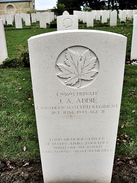 C'est un peu au nord, sur la côte, qu'est débarquée la 3e Division du Canada le 6 juin 1944 et que 335 officiers et soldats ont été tués au combat ou sont morts de leurs blessures. Dans ce cimetière reposent les Canadiens qui ont péri lors du débarquement en Normandie et au cours des premières étapes de la campagne qui a suivi.