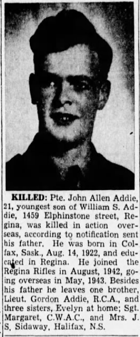 Les Canadiens qui sont morts vers la fin des combats en Normandie sont inhumés au cimetière militaire canadien de Bretteville-sur-Laize. Le cimetière militaire canadien de Bény-sur-Mer compte 2048 sépultures, ainsi qu'un monument spécial érigé à la mémoire d'un soldat du Corps canadien d'infanterie dont on sait qu'il a été inhumé ici, mais dont la tombe n'a jamais pu être trouvée.