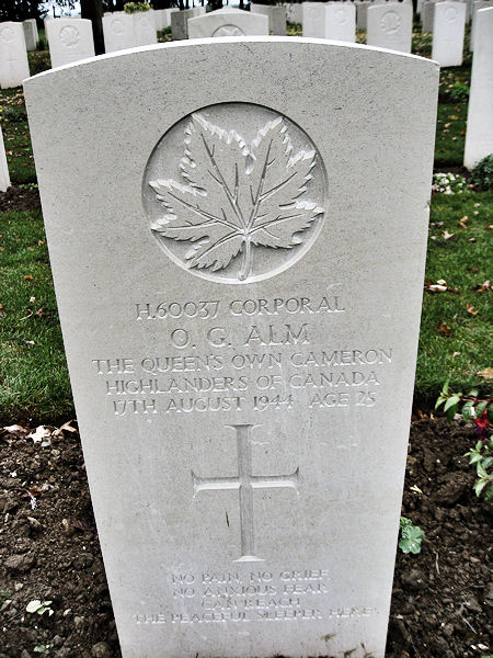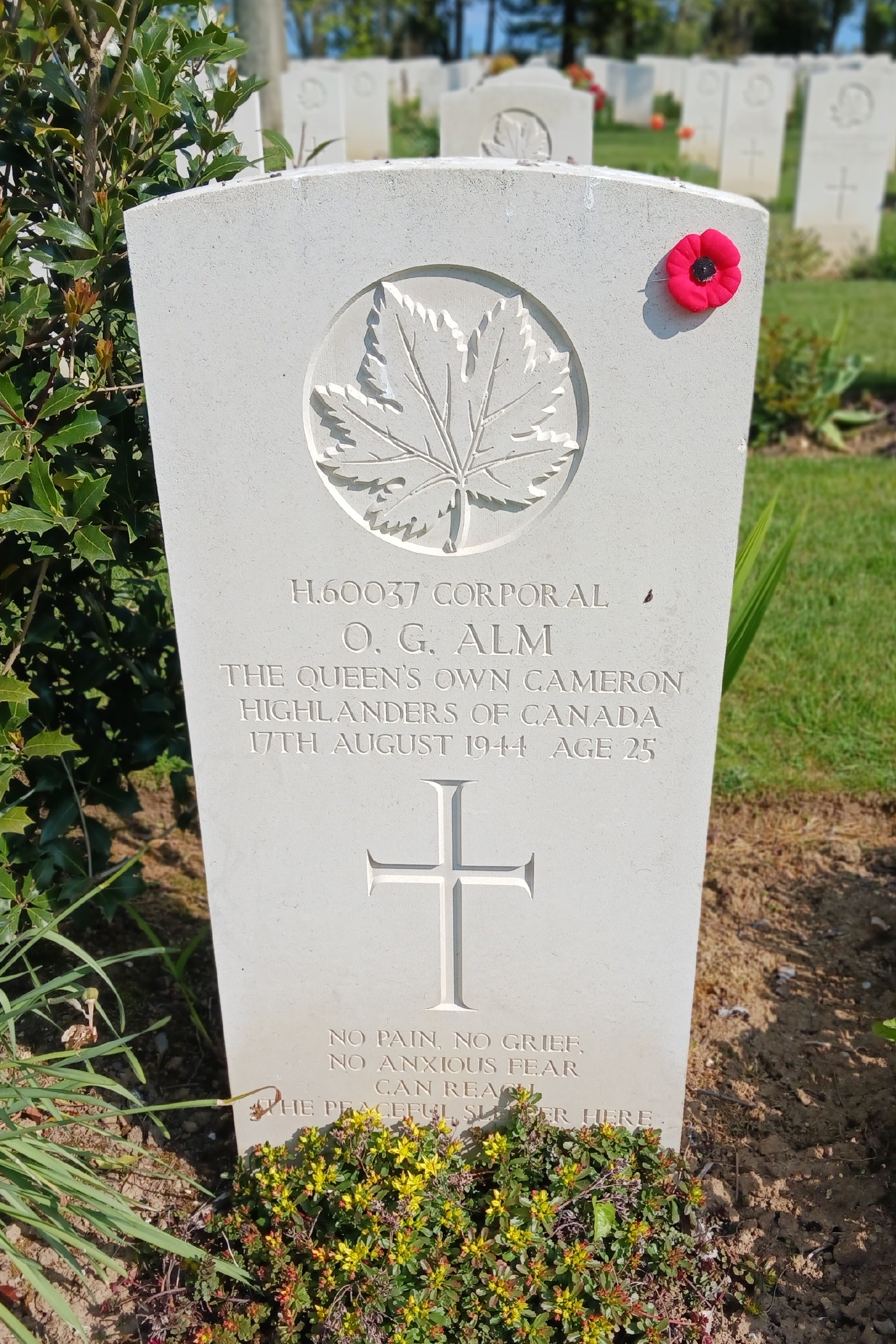 Les Canadiens qui sont morts vers la fin des combats en Normandie sont inhumés au cimetière militaire canadien de Bretteville-sur-Laize. Le cimetière militaire canadien de Bény-sur-Mer compte 2048 sépultures, ainsi qu'un monument spécial érigé à la mémoire d'un soldat du Corps canadien d'infanterie dont on sait qu'il a été inhumé ici, mais dont la tombe n'a jamais pu être trouvée.