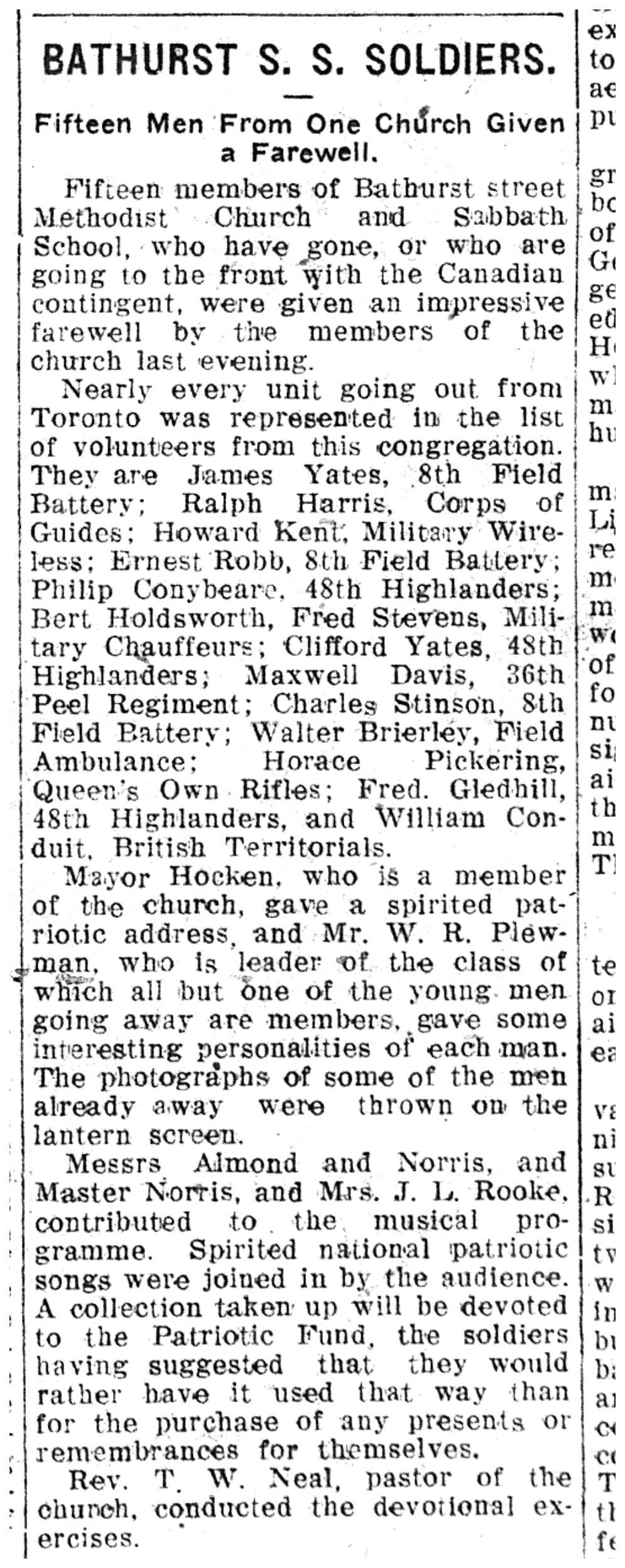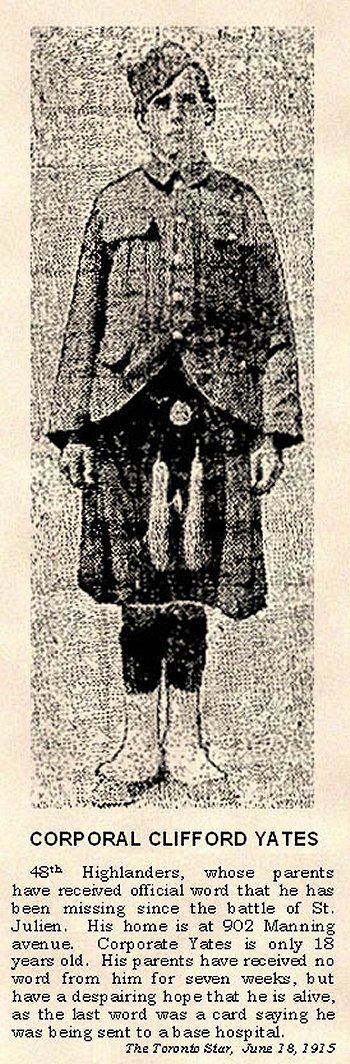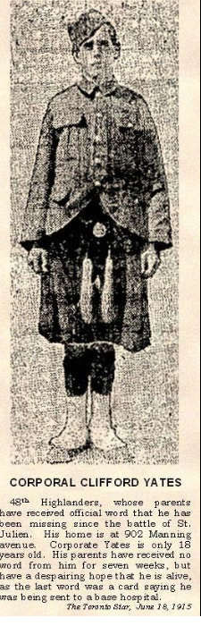 Fils de James A. and Annie Yates de 902, Manning Avenue, Toronto, Ontario.