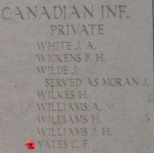À LA PLUS GRANDE GLOIRE DE DIEU ICI SONT INSCRITS LES NOMS DES SOLDATS QUI SONT TOMBÉS DANS LE SAILLANT D'YPRES, MAIS QUE LES HASARDS DE LA GUERRE ONT EMPÊCHÉS D'AVOIR UNE IDENTITÉ ET UNE SÉPULTURE HONORABLE COMME LEURS CAMARADES DANS LA MORT.