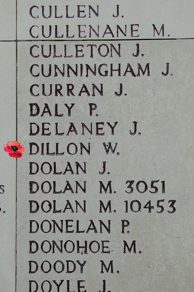 À LA PLUS GRANDE GLOIRE DE DIEU ICI SONT INSCRITS LES NOMS DES SOLDATS QUI SONT TOMBÉS DANS LE SAILLANT D'YPRES, MAIS QUE LES HASARDS DE LA GUERRE ONT EMPÊCHÉS D'AVOIR UNE IDENTITÉ ET UNE SÉPULTURE HONORABLE COMME LEURS CAMARADES DANS LA MORT.