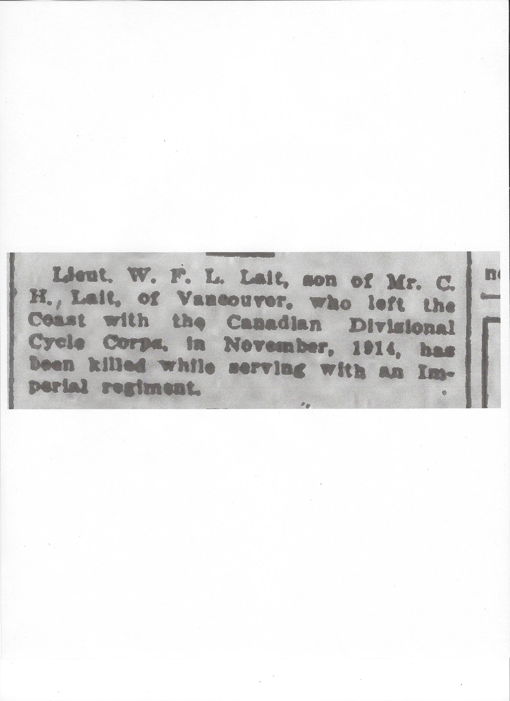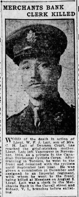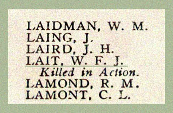 Galerie numérique de Sous-lieutenant Wilfred Francis James Lait