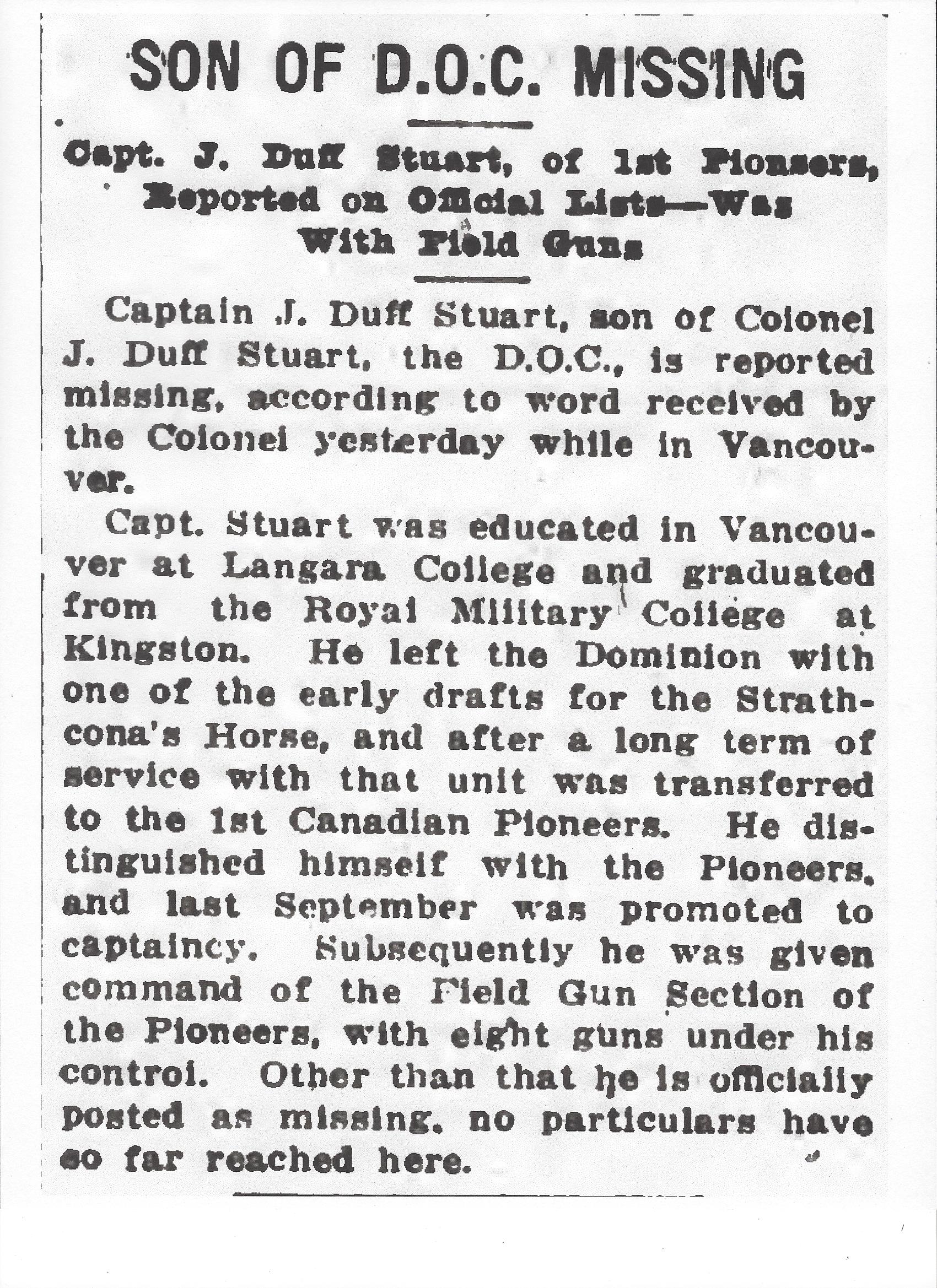 Fils de Brig. Gen. James Duff Stuart et Mary Stuart, de 1403, Balfour Avenue, Vancouver, Colombie-Britannique.