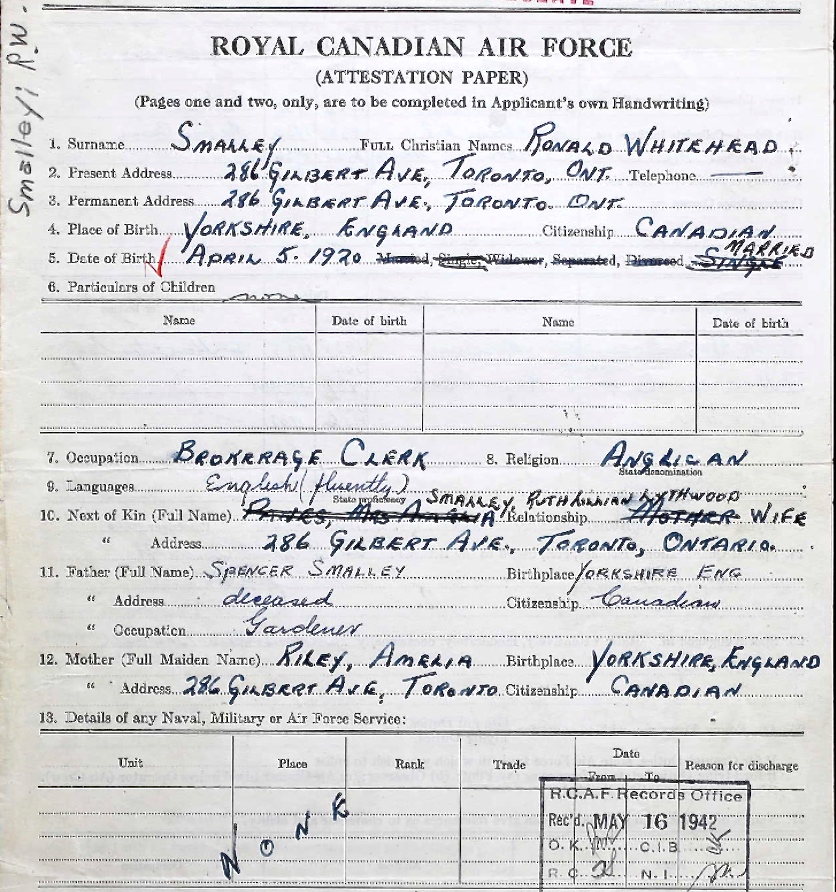 Galerie numérique de Sous-officier breveté de 2e classe Ronald Whitehead Smalley