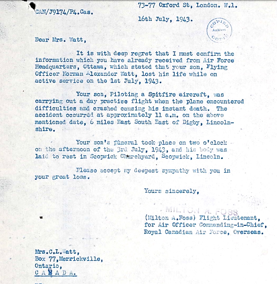 Galerie numérique de Lieutenant d'aviation Norman Alexander Watt