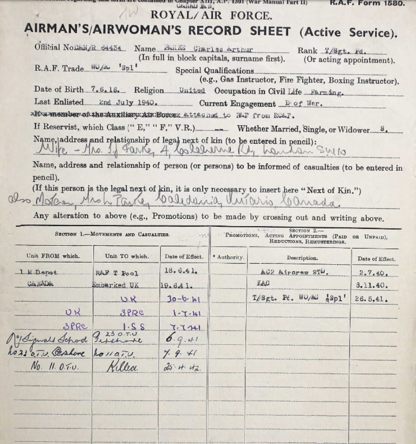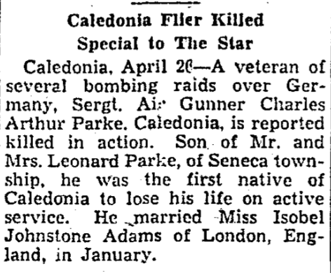 Fils de Leonard et Martha Parke; Époux de Isobel Johnstone Parke, de Earls Court, London.