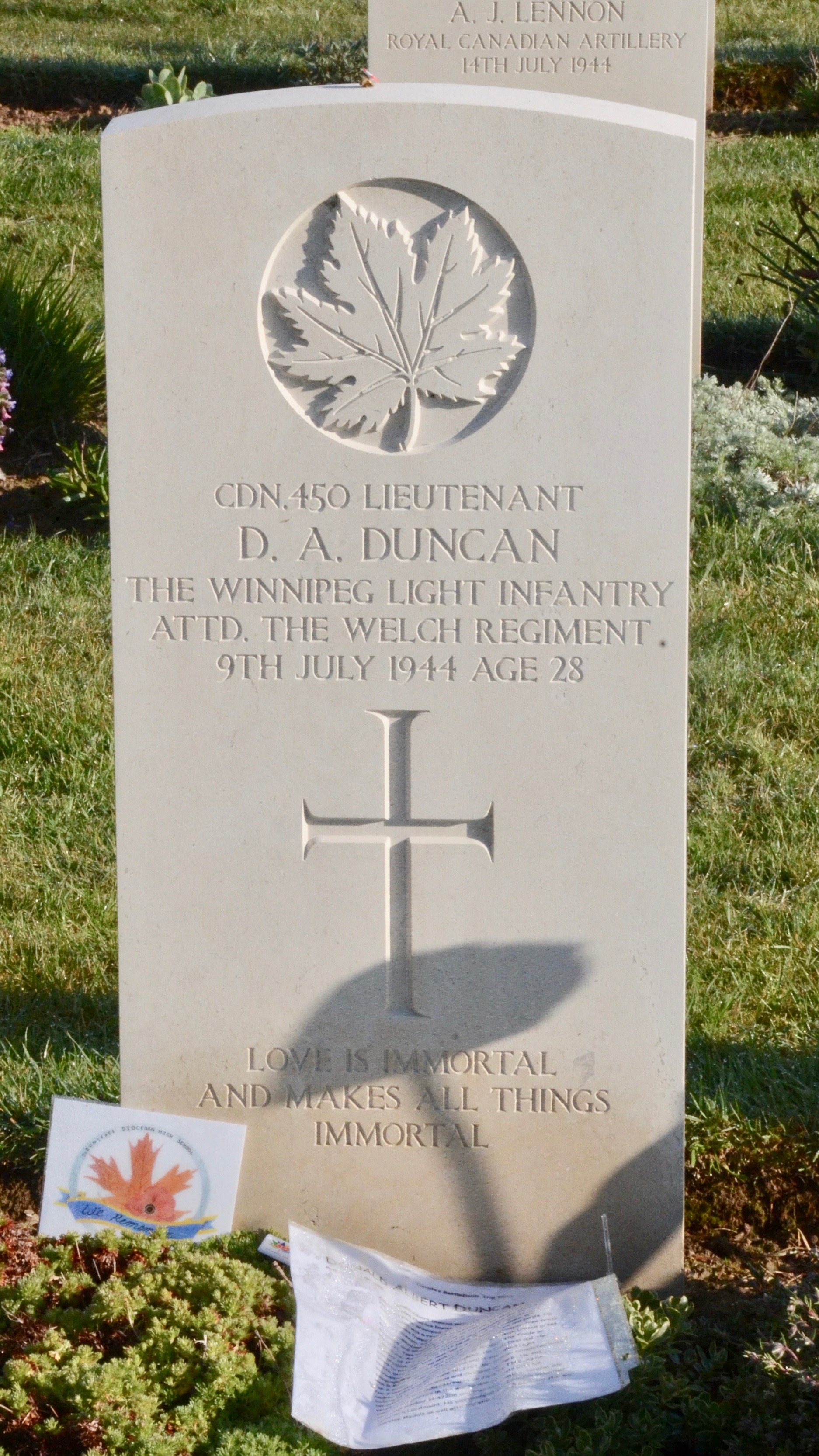 Les Canadiens qui sont morts vers la fin des combats en Normandie sont inhumés au cimetière militaire canadien de Bretteville-sur-Laize. Le cimetière militaire canadien de Bény-sur-Mer compte 2048 sépultures, ainsi qu'un monument spécial érigé à la mémoire d'un soldat du Corps canadien d'infanterie dont on sait qu'il a été inhumé ici, mais dont la tombe n'a jamais pu être trouvée.