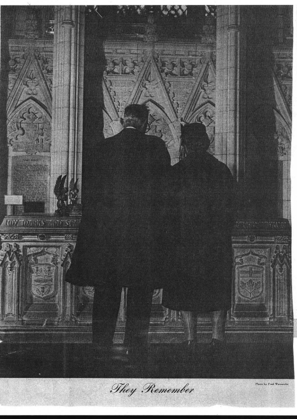 Tandis qu'ils cherchaient un manteau, ils se sont mis à parler avec le commis et vinrent à dire que la Mère de la Croix d'argent n'avait pas de manteau convenable pour la cérémonie au Monument commémoratif de guerre du Canada. Le commis leur a alors demandé de l'excuser un moment. Il est revenu peu de temps après et a dit aux Kimmel que le gérant du magasin avait dit qu'Eatons était prêt à offrir à Mme Kimmel le manteau qu'elle désirait. Cette dernière continua de regarder les manteaux de laine. Le commis lui dit qu'il y avait une autre section qu'elle pourrait préférer et l'emmena dans la section de la fourrure où elle se trouva un joli manteau de vison noir.
