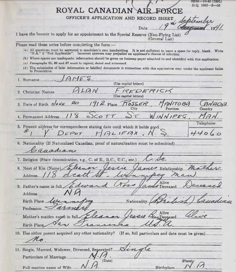 Fils de Edward R. James, et de Eleanor J. James, de Winnipeg, Manitoba, Canada.