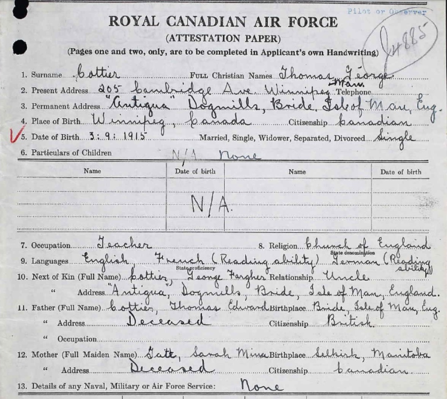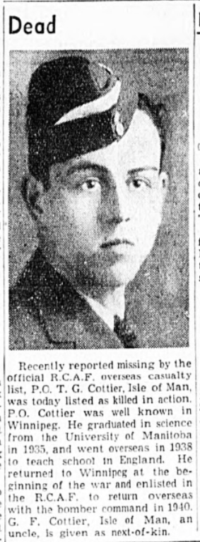 Fils de Thomas Edward et Sadie Cottier. Neveu de M. G. F. Cottier, de Bride, Isle de Man.