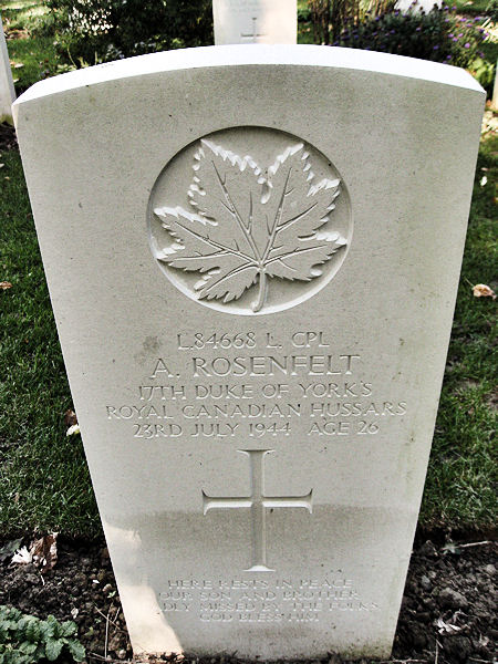 Les Canadiens qui sont morts vers la fin des combats en Normandie sont inhumés au cimetière militaire canadien de Bretteville-sur-Laize. Le cimetière militaire canadien de Bény-sur-Mer compte 2048 sépultures, ainsi qu'un monument spécial érigé à la mémoire d'un soldat du Corps canadien d'infanterie dont on sait qu'il a été inhumé ici, mais dont la tombe n'a jamais pu être trouvée.