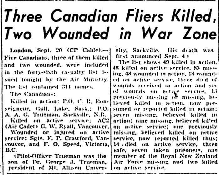 Fils de George et Agnes Trueman. Époux d'Ethel Mary Thorborn Trueman, de Lincoln.