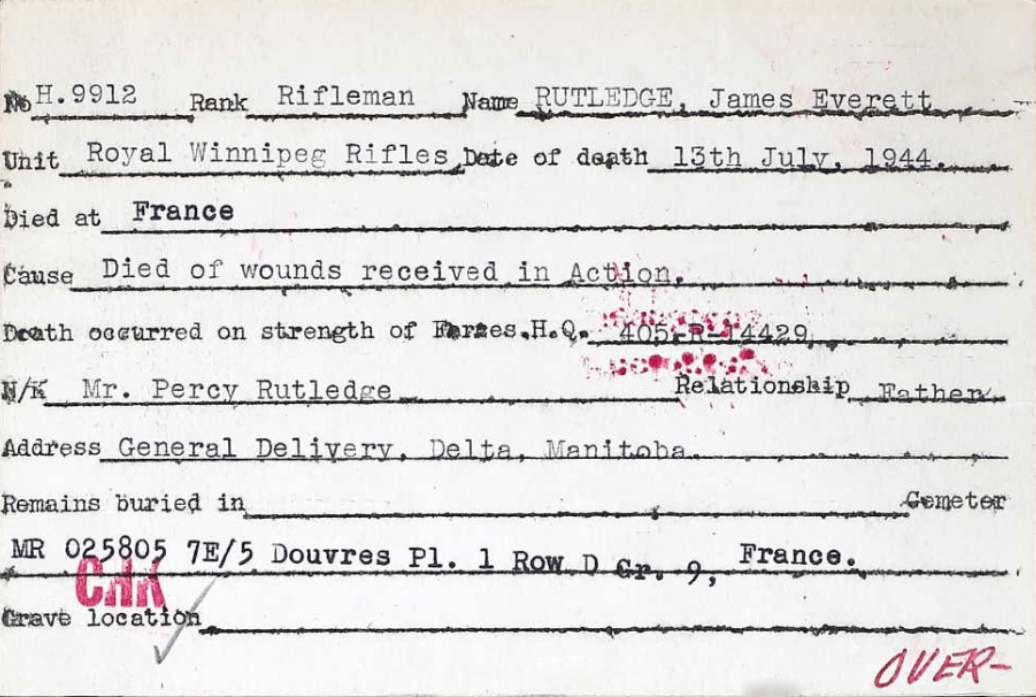 Les Canadiens qui sont morts vers la fin des combats en Normandie sont inhumés au cimetière militaire canadien de Bretteville-sur-Laize. Le cimetière militaire canadien de Bény-sur-Mer compte 2048 sépultures, ainsi qu'un monument spécial érigé à la mémoire d'un soldat du Corps canadien d'infanterie dont on sait qu'il a été inhumé ici, mais dont la tombe n'a jamais pu être trouvée.