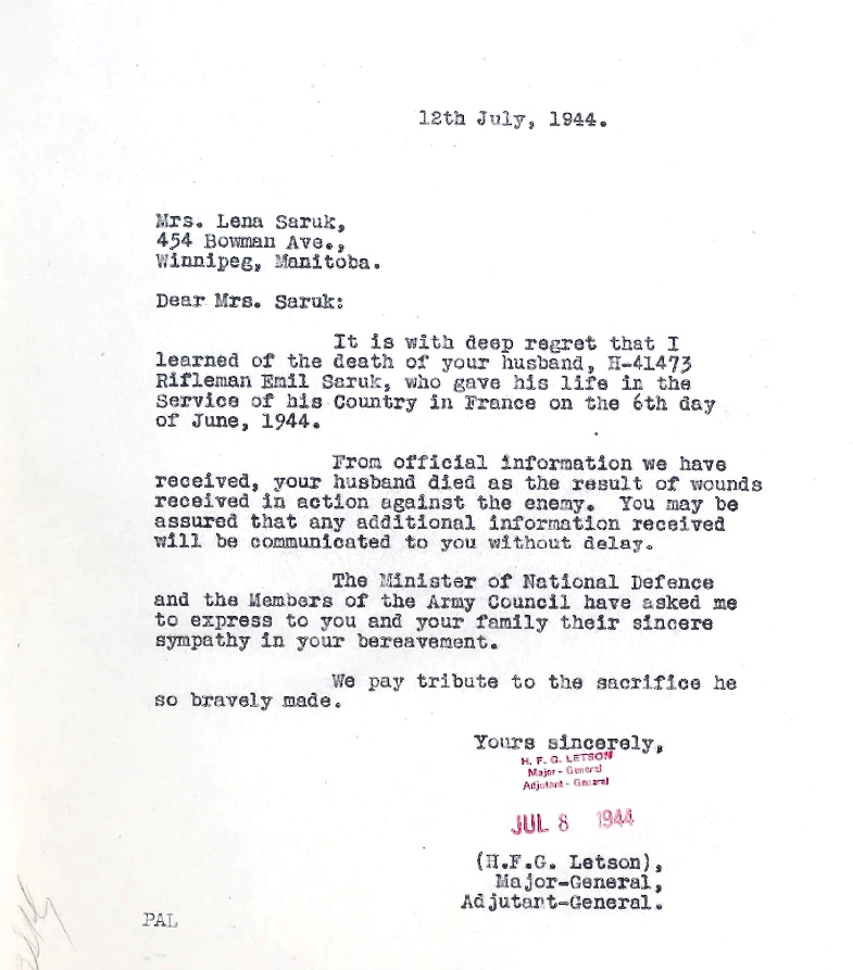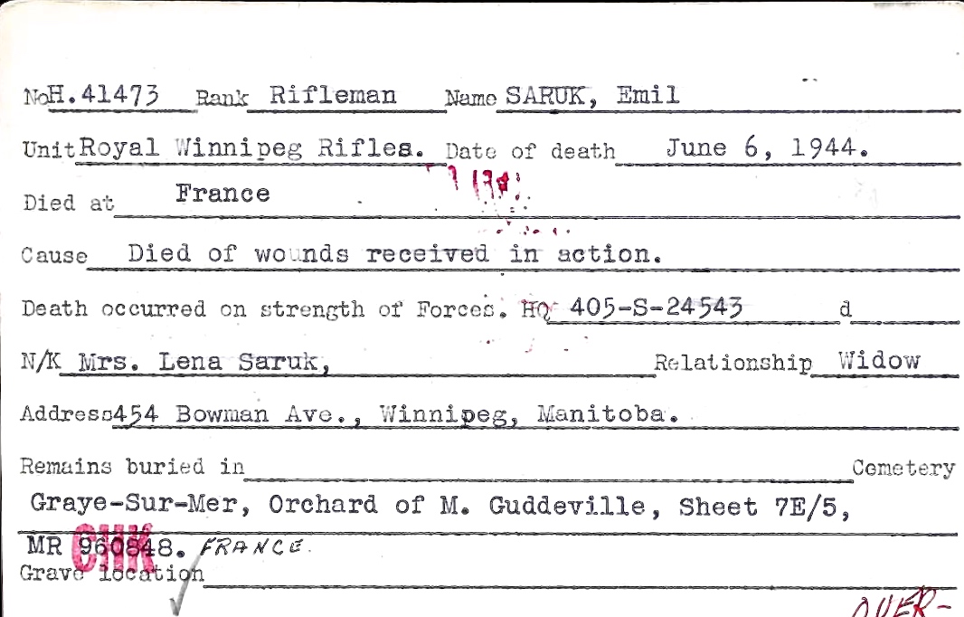 Les Canadiens qui sont morts vers la fin des combats en Normandie sont inhumés au cimetière militaire canadien de Bretteville-sur-Laize. Le cimetière militaire canadien de Bény-sur-Mer compte 2048 sépultures, ainsi qu'un monument spécial érigé à la mémoire d'un soldat du Corps canadien d'infanterie dont on sait qu'il a été inhumé ici, mais dont la tombe n'a jamais pu être trouvée.