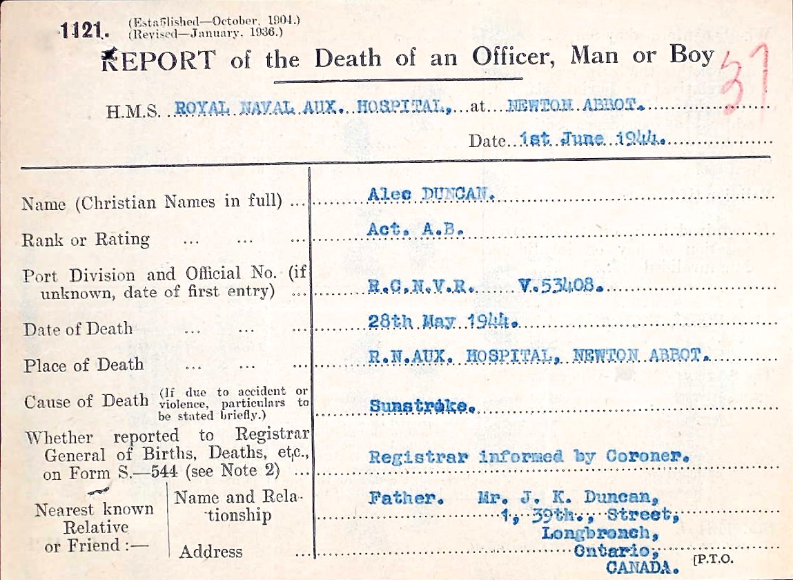Galerie numérique de Matelot de 2e classe Alexander Hugh Duncan