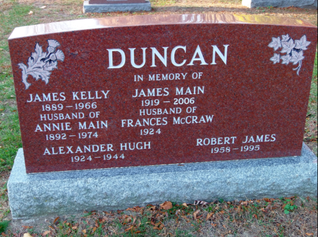 Fils de James et Annie Duncan, de Toronto, Ontario, Canada. Gen.