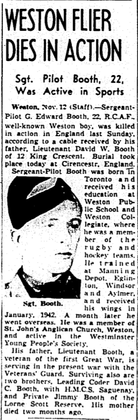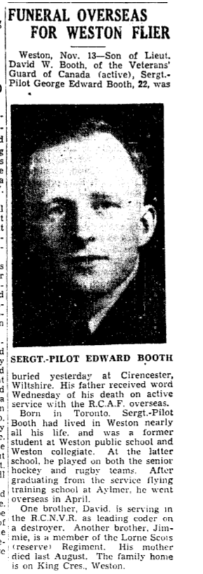 Fils de David W. Booth et Isobel May Booth, de Downsview, Ontario.