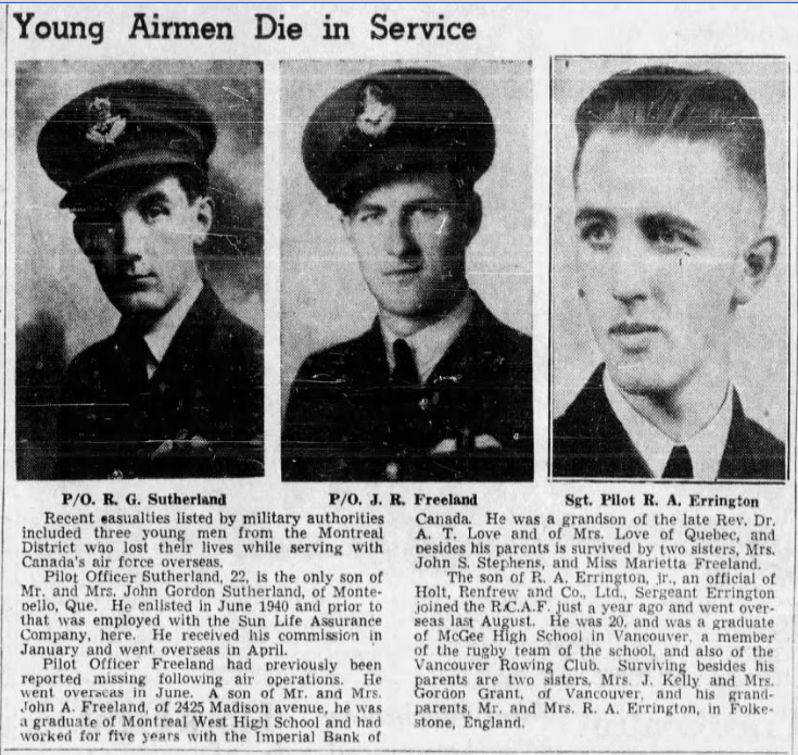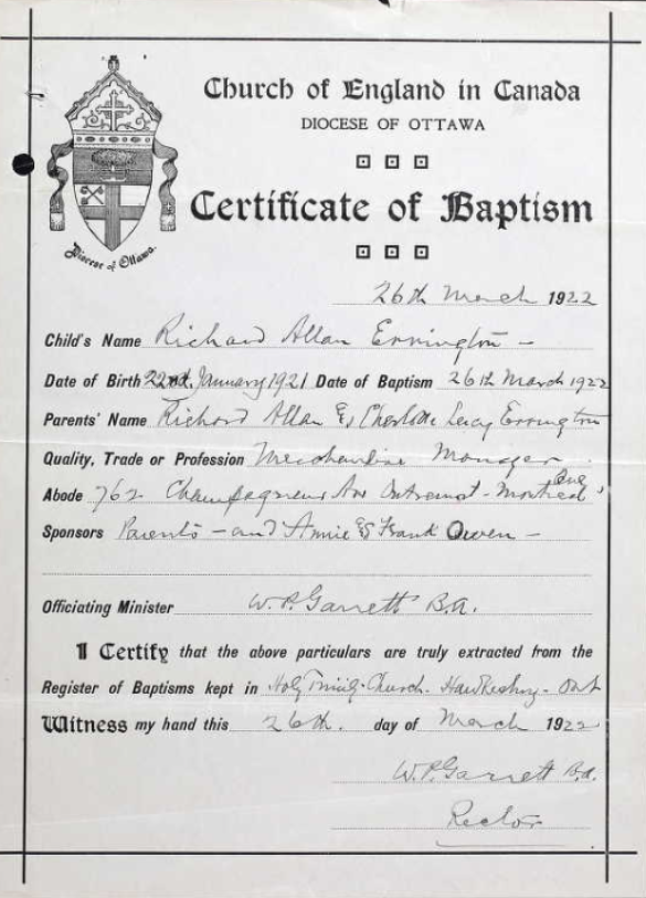 Fils de Richard Allen Errington et Charlotte Lucy Errington, de Vancouver, Colombie-Britannique.