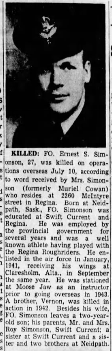Fils de M. et Mme R. Simonson. Époux de Muriel B. Simonson, de Regina, Saskatchewan.