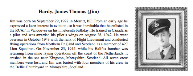 Fils de Archibald et Ellen Ann Hardy, de Merritt, Colombie-Britannique.