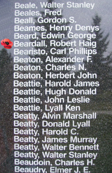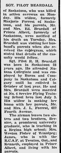 Fils de Edward L. Beardall et Rhoda Beardall. Époux de Marjorie Vivian Beardall, de Saskatoon, SK.