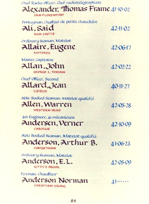Page 84 du Livre du Souvenir de la Marine marchande.