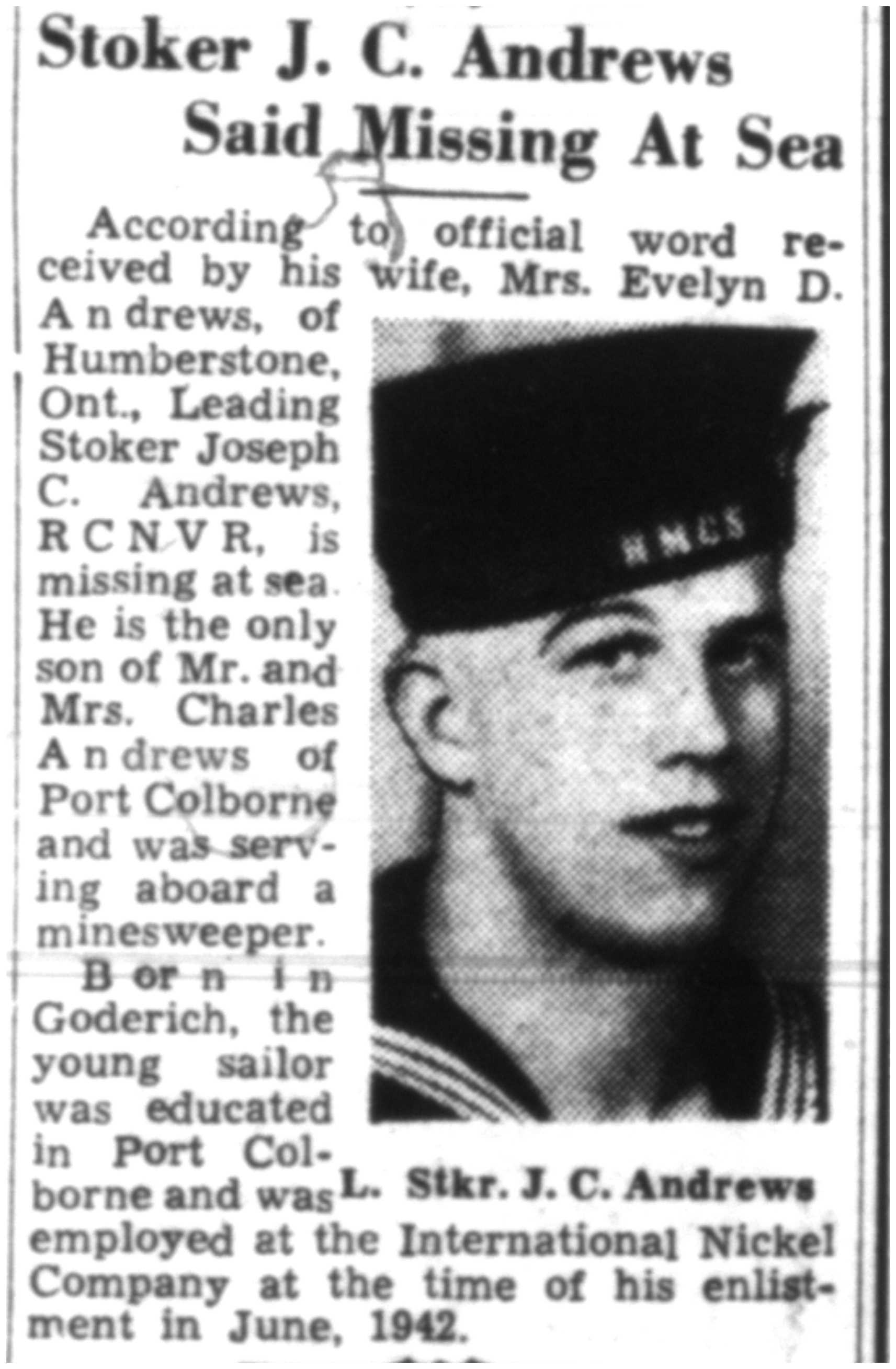 Galerie numérique de Quartier-maître chauffeur Joseph Charles Andrews