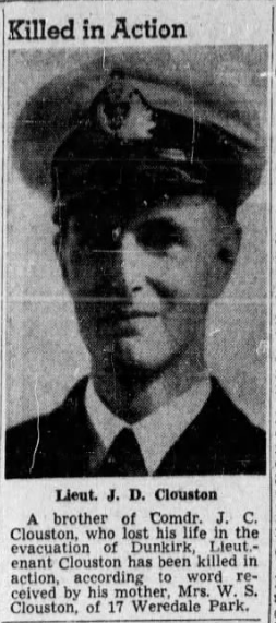 Frère du commander James Campbell Clouston, décédé au service du Royal Navy.