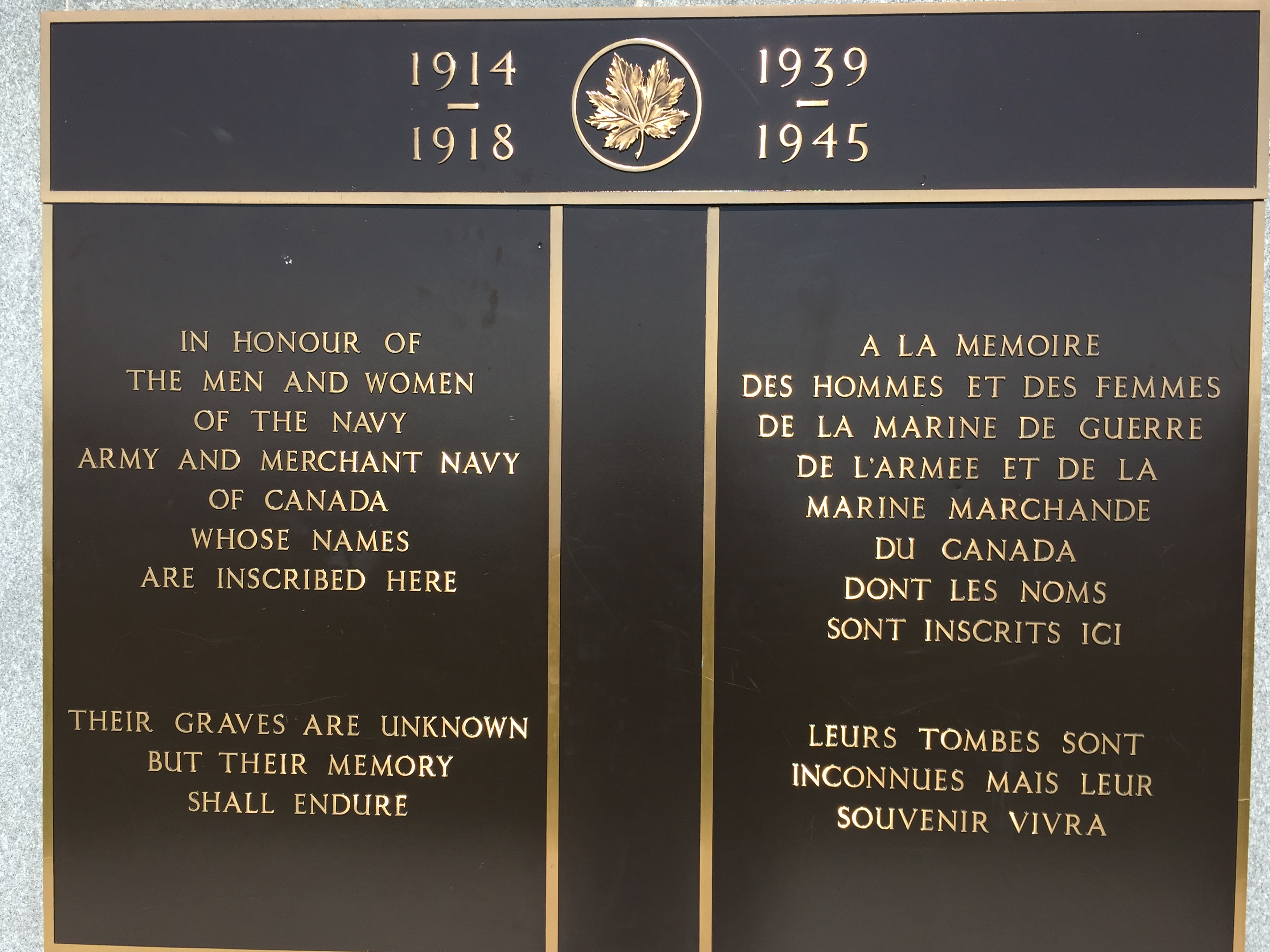 Ce Monument commémoratif, érigé au parc de Point Pleasant dans la capitale de la Nouvelle-Écosse, est l'un des rares hommages concrets aux hommes disparus en mer. Pendant la Seconde Guerre mondiale, la Marine royale du Canada perdit vingt-quatre navires et près de deux mille membres de ses effectifs.