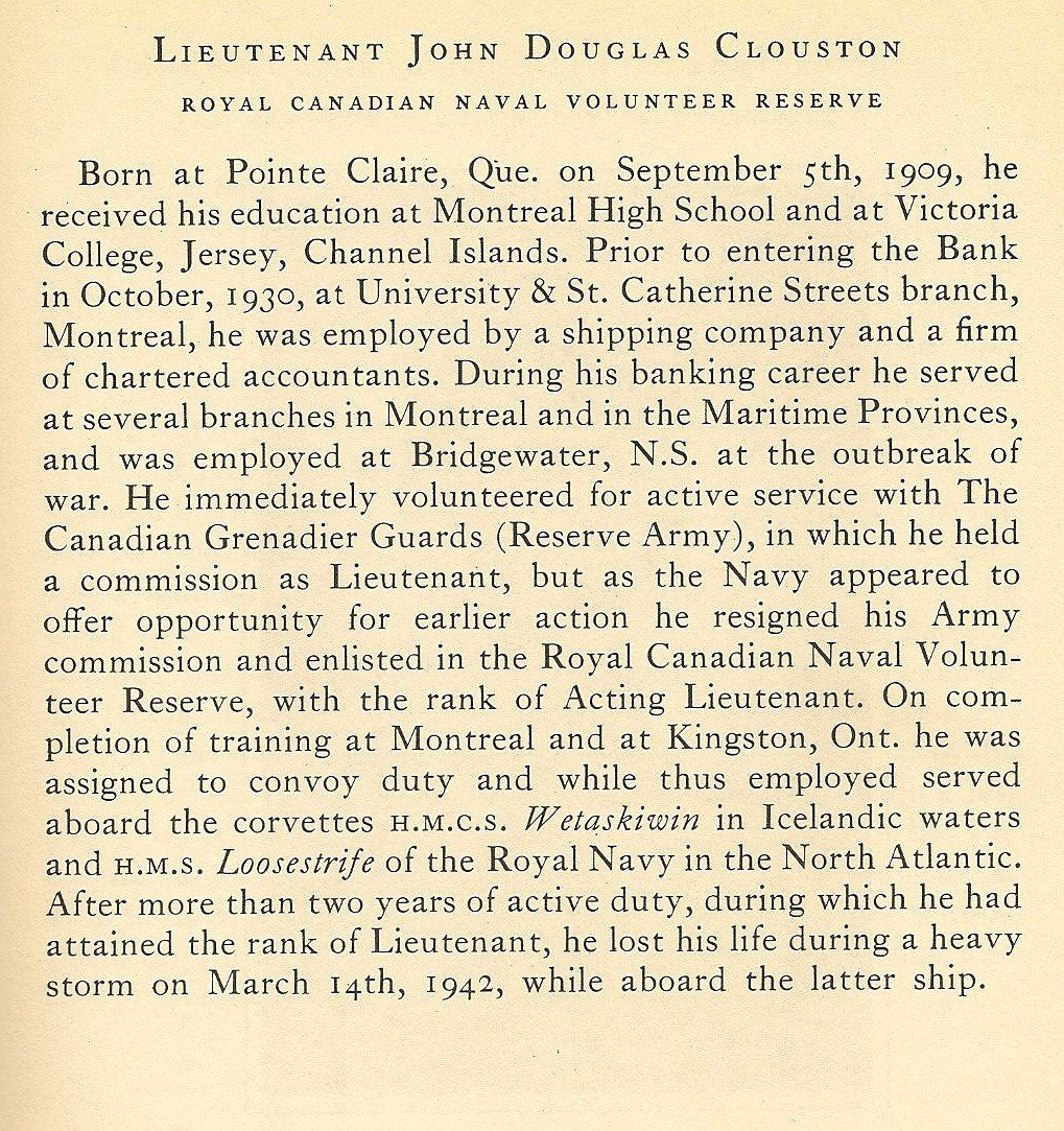 Fils de William et Evelyn Stewart Clouston de Westmount, Québec.