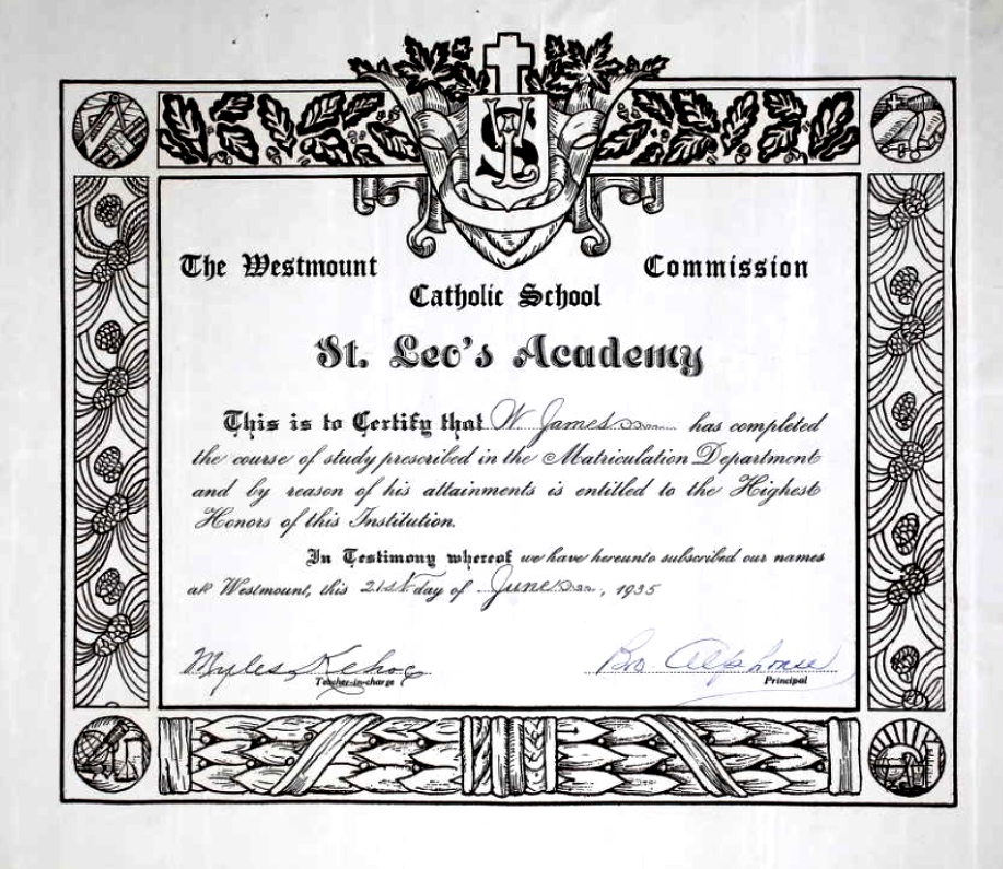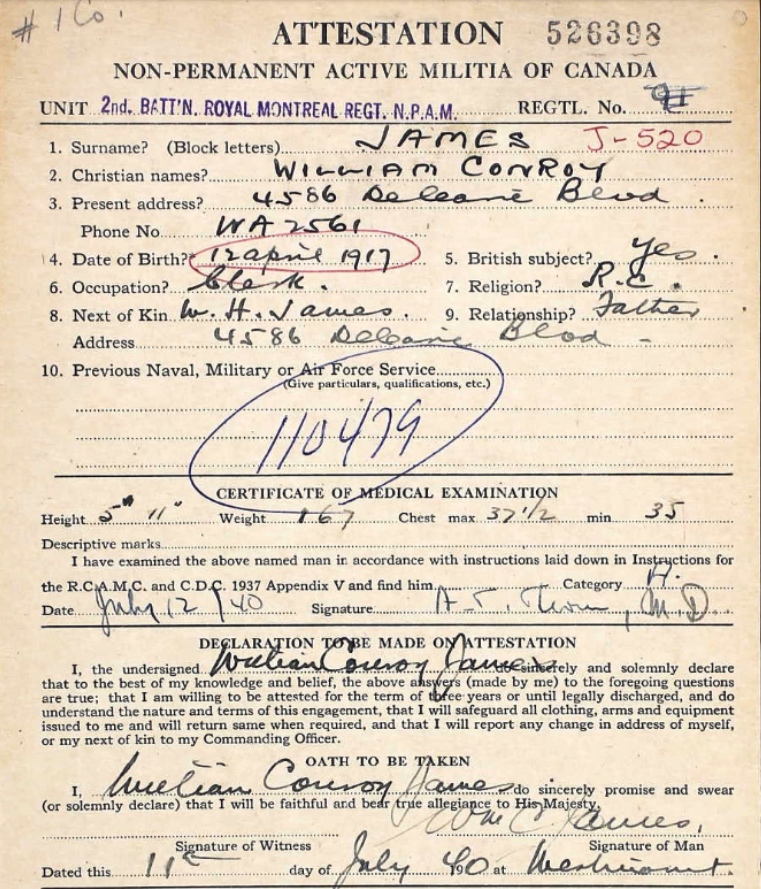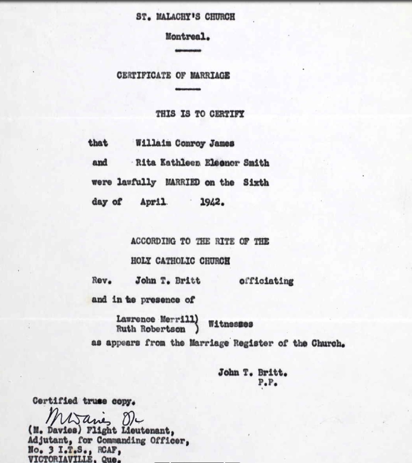 Fils de William Harold et Marguerite James, de Montréal. Époux de Rita E, James, de Montréal.