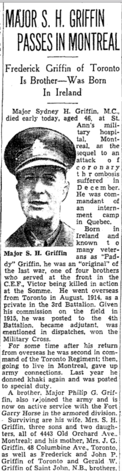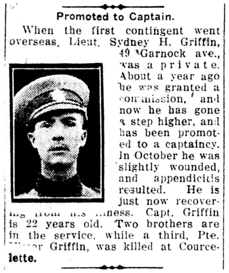Frère du Colonel Philip George Griffin, décédé au service du Royal Canadian Armoured Corps.